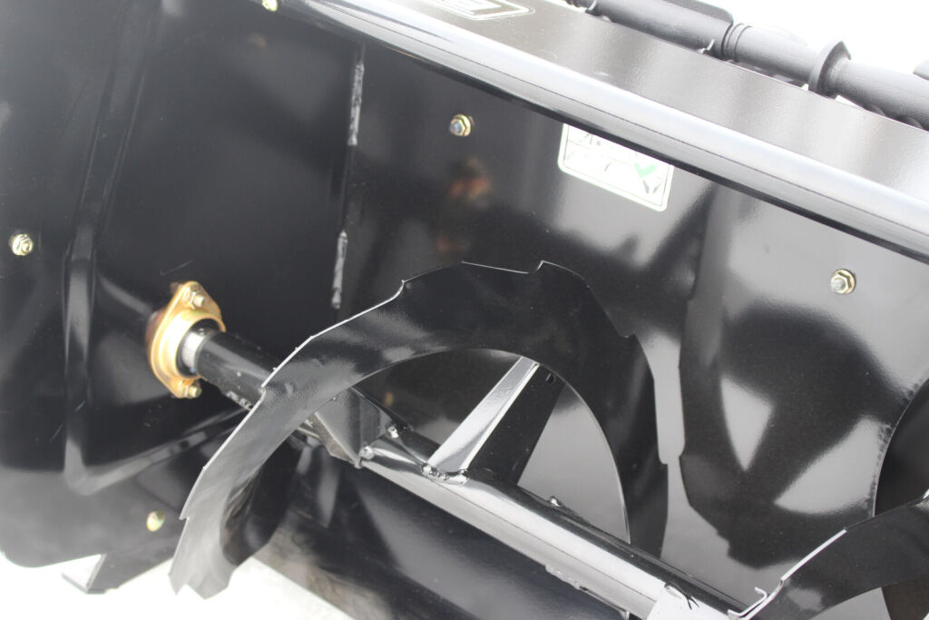 - Přihrnovací šnek: vysokovýkonný ocelový šnek, ozubený pro účinnější řezání tvrdého sněhu, chráněný střižným šroubem proti poškození