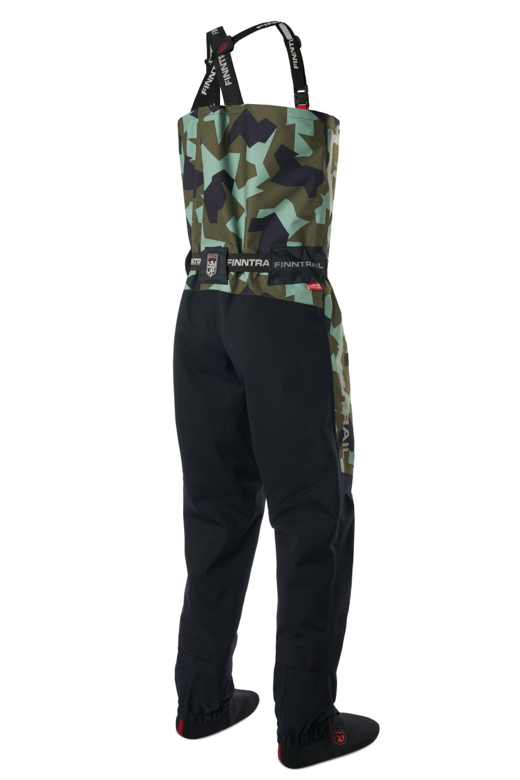 - Kalhoty jsou zakončené integrovanými 4 mm neoprenovými ponožkami se zesíleným chodidlem