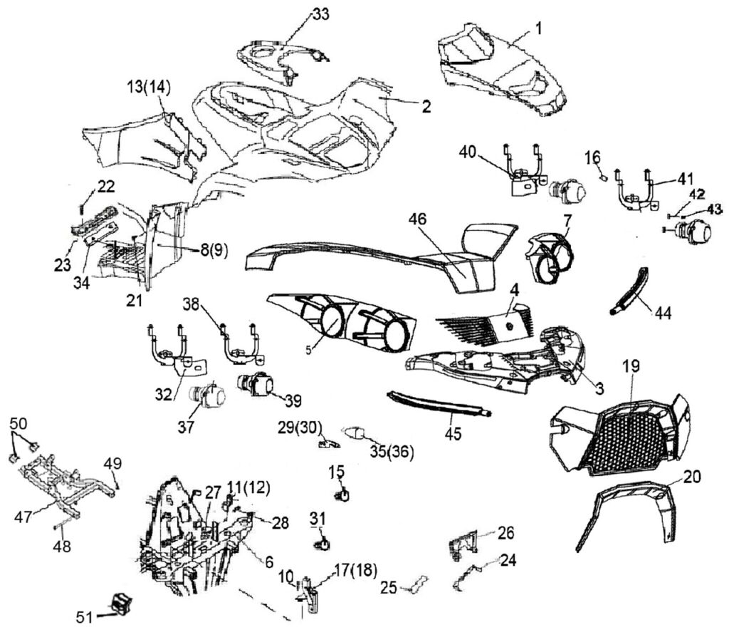 FRONT BODY BRACKET L Of ATV300-D EFI T3b