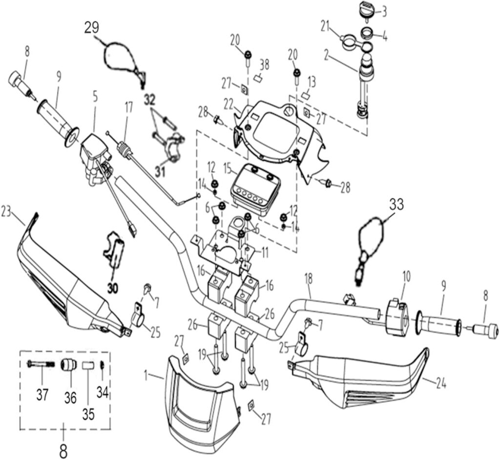 8 NEW GUARD, HANDLEBAR END ASSY. (MATCH WITH NEW HANDLEBAR) (Ref. č 8) 72037 NEW GUARD, HANDLEBAR END ASSY. (MATCH WITH NEW HANDLEBAR)  2 Cena bez DPH € 3,14 Cena s DPH € 4