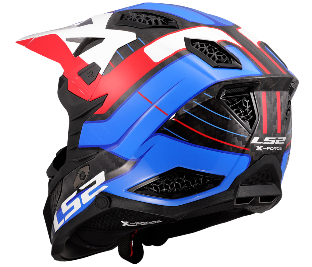 Vrchol nabídky motokrosových a off-roadových helem LS2. Karbonová skořepina přináší nízkou hmotnost a vysokou pevnost. Sluneční štítek je odnímatelný díky rychloupínacímu mechanismu a je možné jej délkově seřizovat. V přepracovaném interiéru je nově picí nástavec pro připojení k drink systému. Nová homologace ECE 22.06. Přilba X-Force Carbon se vyrábí ve dvou provedeních - se skořepinou ze 6K karbonu a se skořepinou z 9K karbonu.