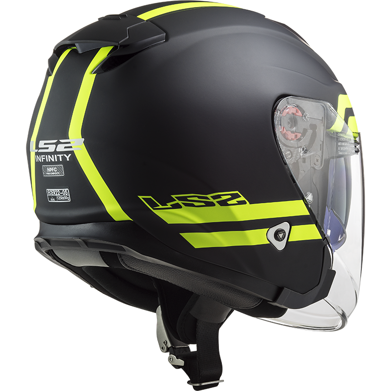 Otevřená helma OF521 Infinity Beyond se sluneční clonou a vysokou aktivní bezpečností díky atraktivnímu fluorescenčnímu svítivému lakování přináší technicky vyspělý moderní design i pocit svobody za jízdy. Perfektní a všestranná: v městské džungli, při každodenním dojíždění do práce nebo na dálkových expedicích třeba až do Austrálie, helma LS2 Infinity vždy poskytne špičkové pohodlí, vysokou kvalitu a poutavý atraktivní design. Skořepina z ultralehkého, ultra-pevného HPFC - High Performance Fiberglass Composite - materiálu s vynikající absorpcí energie a vysokou bezpečností. Integrovaná sluneční clona a čiré plexi odolné proti poškrábání. Plně regulovatelné větrání Dynamic Flow-through Ventilation a kompletně vyjímatelný a pratelný hypoalergenní interiér. Mimořádně nízká hmotnost, pouze 1100g.