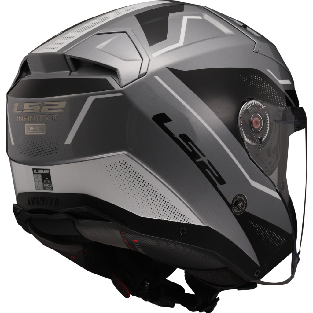 Otevřená helma Infinity II s integrovanou sluneční clonou a vysokou bezpečností přináší moderní design, všestrannost i pocit svobody za jízdy. Ať už preferujete jakýkoli styl jízdy, přilba Infinity II nabízí vše, co potřebujete v městské džungli, při každodenním ježdění do práce nebo na dálkových expedicích: špičkové pohodlí, vysokou bezpečnost a poutavý design. Zcela nová skořepina z ultralehkého, ultrapevného patentovaného HPFC laminátu, materiálu s vynikající absorpcí energie. Čiré plexi odolné proti poškrábání je nyní nově otevírané tlačítkem. Větrání Dynamic Flow-through Ventilation a kompletně vyjímatelný a pratelný hypoalergenní interiér.