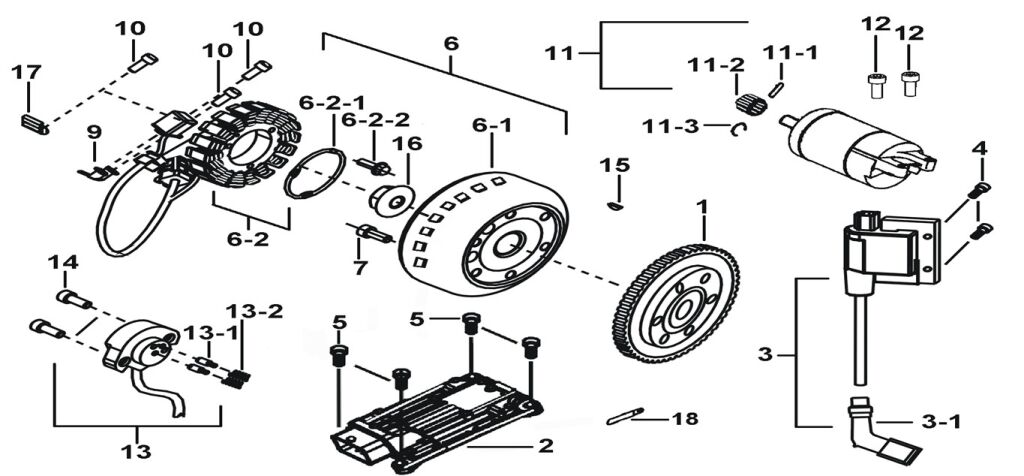 MOTOR STARTING、FLYWHEEL MAGNETO、ECU