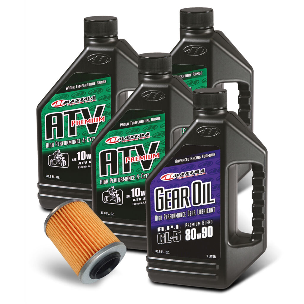 Sada pro kompletní výměnu oleje pro LINHAI LANDFORCE 650, včetně olejového filtru, motorového oleje, oleje do diferenciálů a podrobného návodu s postupem