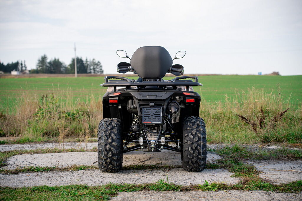 Nová užitková / pracovně-rekreační čtyřkolka s prodlouženým podvozkem, T3b, elektrický posilovač řízení EPS, kapalinou chlazený jednoválec 499 cm3 EFI o výkonu 39hp, automatická převodovka P/R/N/L/H, brzdění motorem, pohon 4x4, dvojitá A-ramena vpředu / dvojitá A-ramena se stabilizátorem vzadu, hydraulické tlumiče s progresivními pružinami, přední a zadní ochranné rámy, tažné zařízení, el. naviják 2500 lbs, kompozitní nosiče vpředu a vzadu, Full-LED osvětlení, prodloužené sedadlo spolujezdce s opěrkou zad, 12V zásuvka, 12" hliníkové disky, 25" pneu, ochranné kryty rukojetí