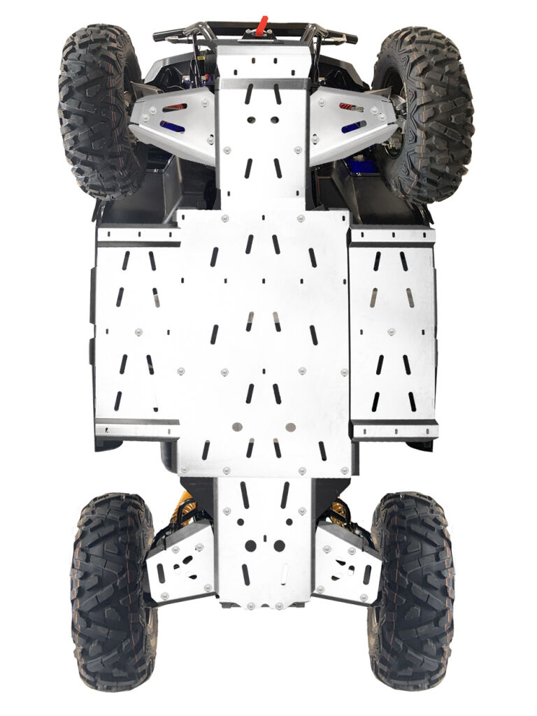 Hliníkové kryty podvozku Shark z odolného a lehkého 4mm hliníku letecké kvality jsou tím nejlepším způsobem, jak ochránit spodní část vašeho UTV, A-ramena a skříň motoru před poškozením od kamenů, skal a dalších přirozených nepřátel. Včetně integrovaných krytů nášlapů. Z mimořádně pevné hliníkové slitiny letecké kvality. Včetně montážních otvorů pro snadnou údržbu stroje bez nutnosti demontáže krytů.