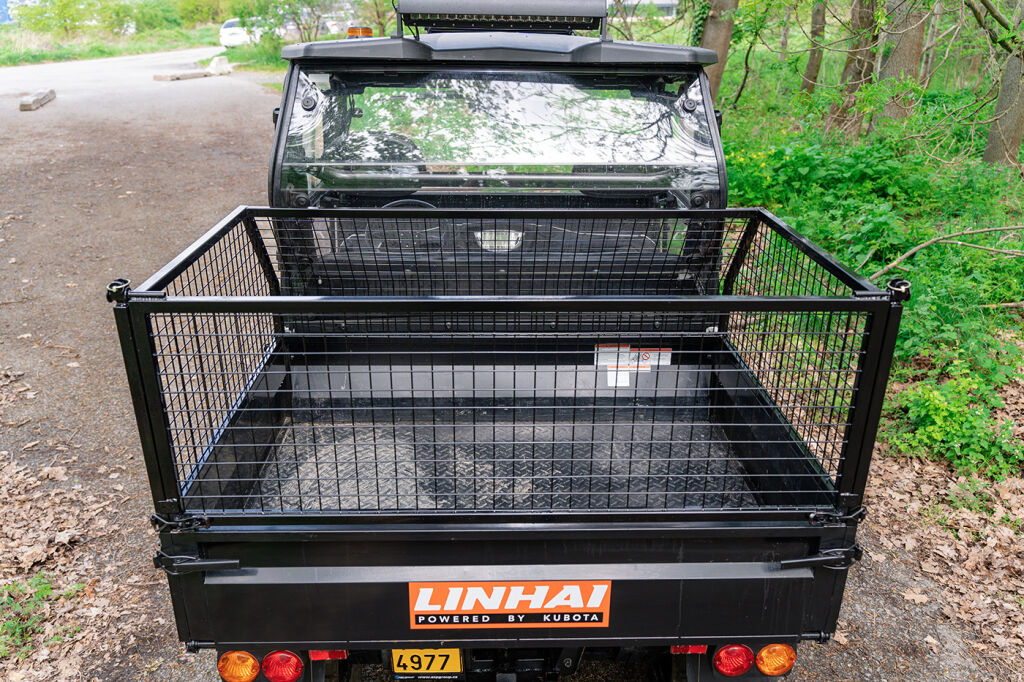 Zvýšené bočnice pro korbu LINHAI UTV 1100 DIESEL, výška 50 cm, zadní díl otevírací s vrchními panty pro snadné vysypání nákladu, povrchová úprava: černé práškové lakování