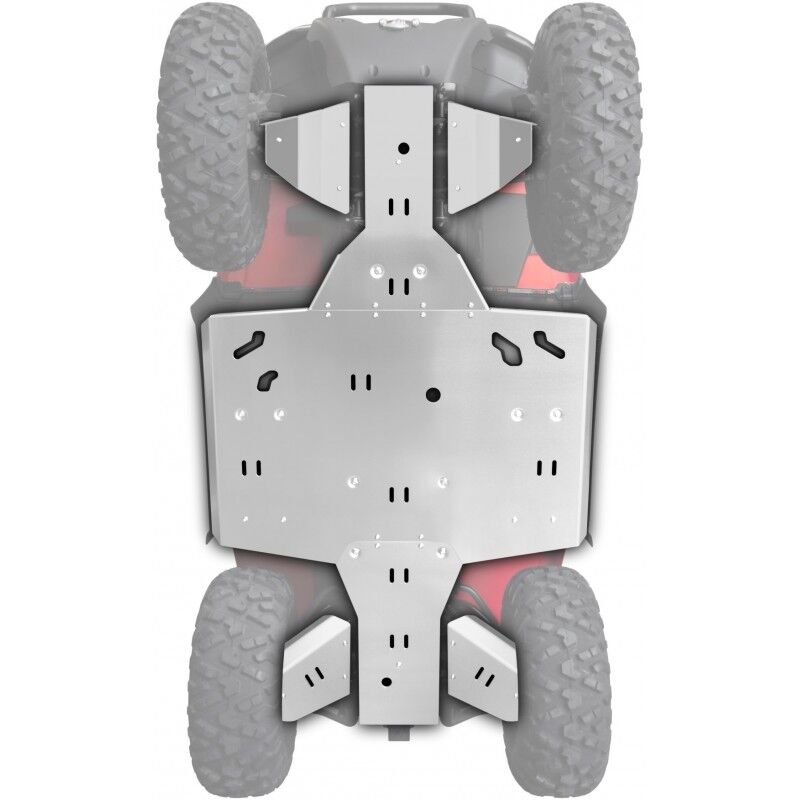 Kompletní sada hliníkových krytů podvozku CFMOTO CFORCE 450-520 L (2022+), špičková kvalita, vysoká odolnost, tvrzený dural letecké kvality tl. 4 mm, snadná montáž, nízká hmotnost, sada obsahuje přední, střední a zadní kryt, 4 kryty ramen a veškerý spojovací materiál